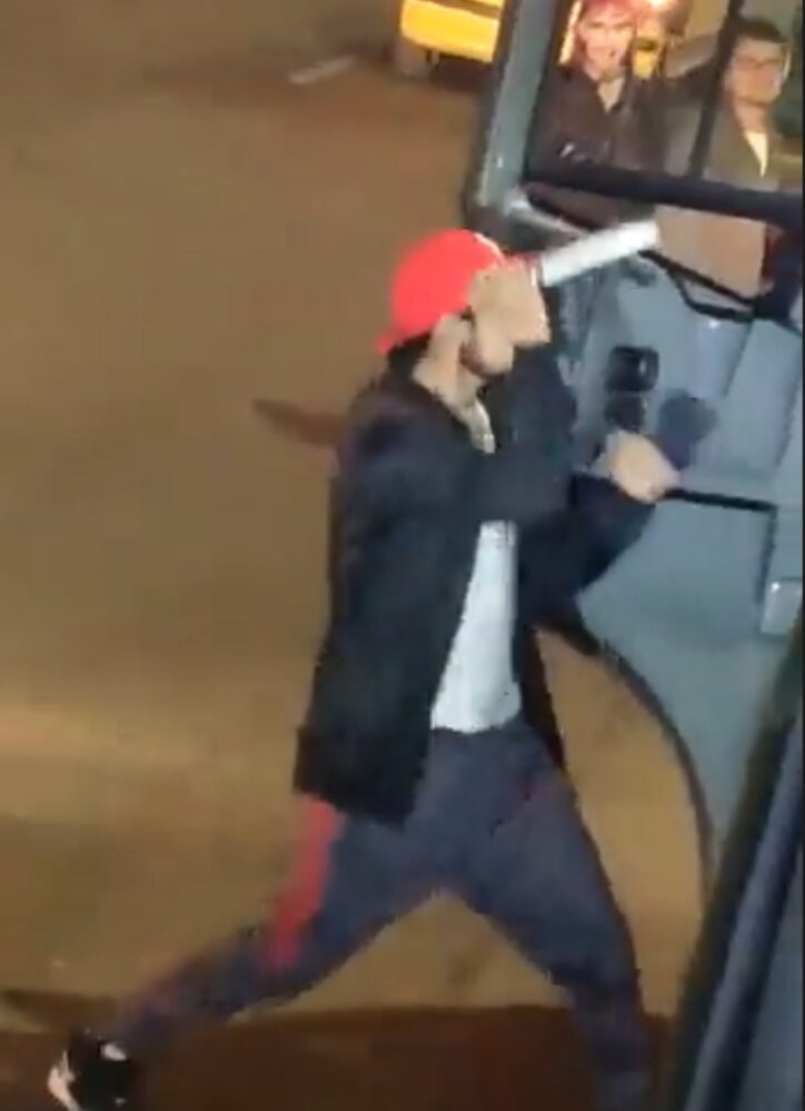 Los pasajeros grabaron lo que para muchos fueron segundos aterradores. El hombre, que vestía chaqueta negra, pantalón gris y gorra roja se abalanzó con furia y le lanzó varios cuchillazos al conductor.