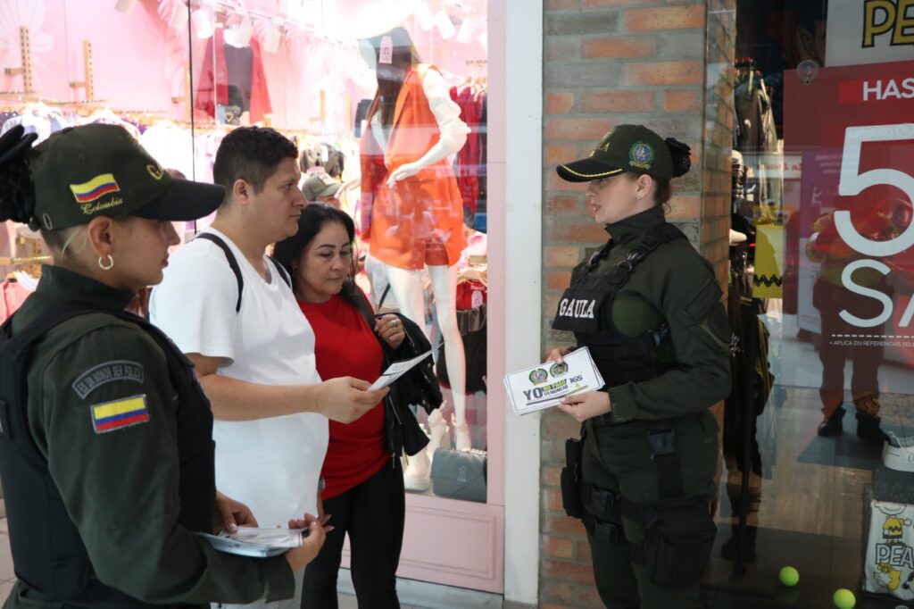 La capitán Natalia Díaz, comandante del Grupo Antiextorsión y Antisecuestro de la Policía de Risaralda, lideró esta semana la visita a varios establecimientos comerciales de Pereira.