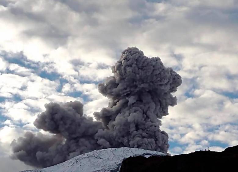 Ciudadanos grabaron el momento exacto en el que una gran columna de ceniza salió del cráter principal del Nevado del Ruiz este lunes. El Servicio Geológico Colombiano advirtió de la inestabilidad en su comportamiento.
