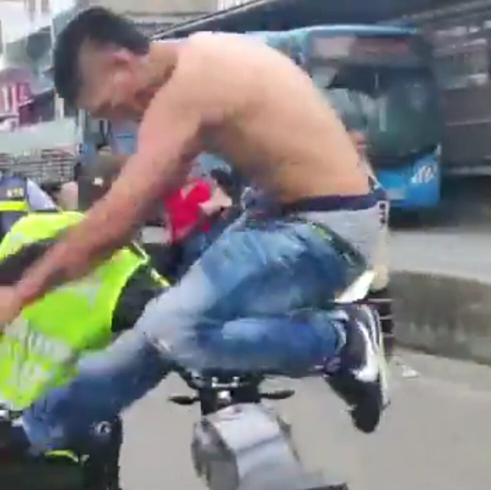 Video | Motociclista invadió el carril de MIO y luego enfrentó a la Policía a golpes