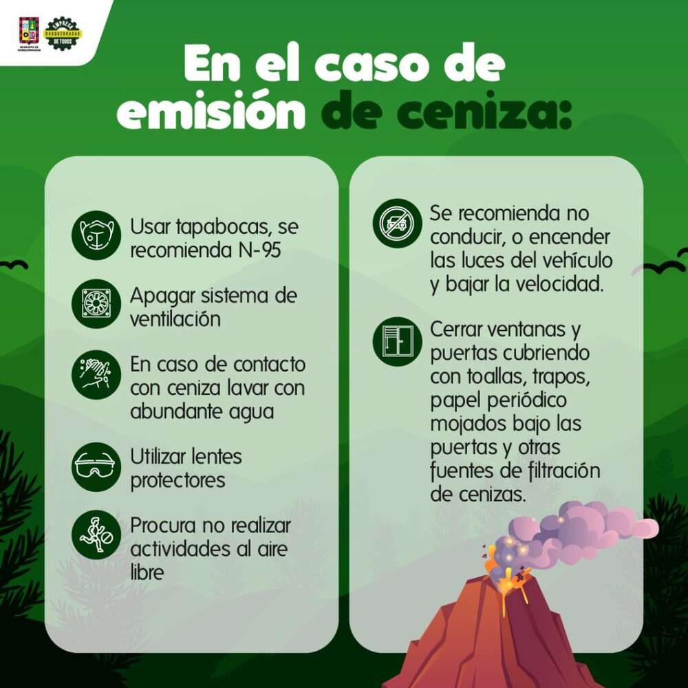 Consumir alimentos preparados con agua embotellada en caso de aumentar la caída de ceniza.