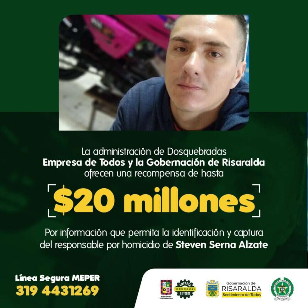 “La ‘Empresa de Todos’, en alianza con la Gobernación de Risaralda, están ofreciendo una recompensa por información que permita dar con el paradero de los responsables del homicidio del mecánico Steven Serna Arango”, agregó Ramos.