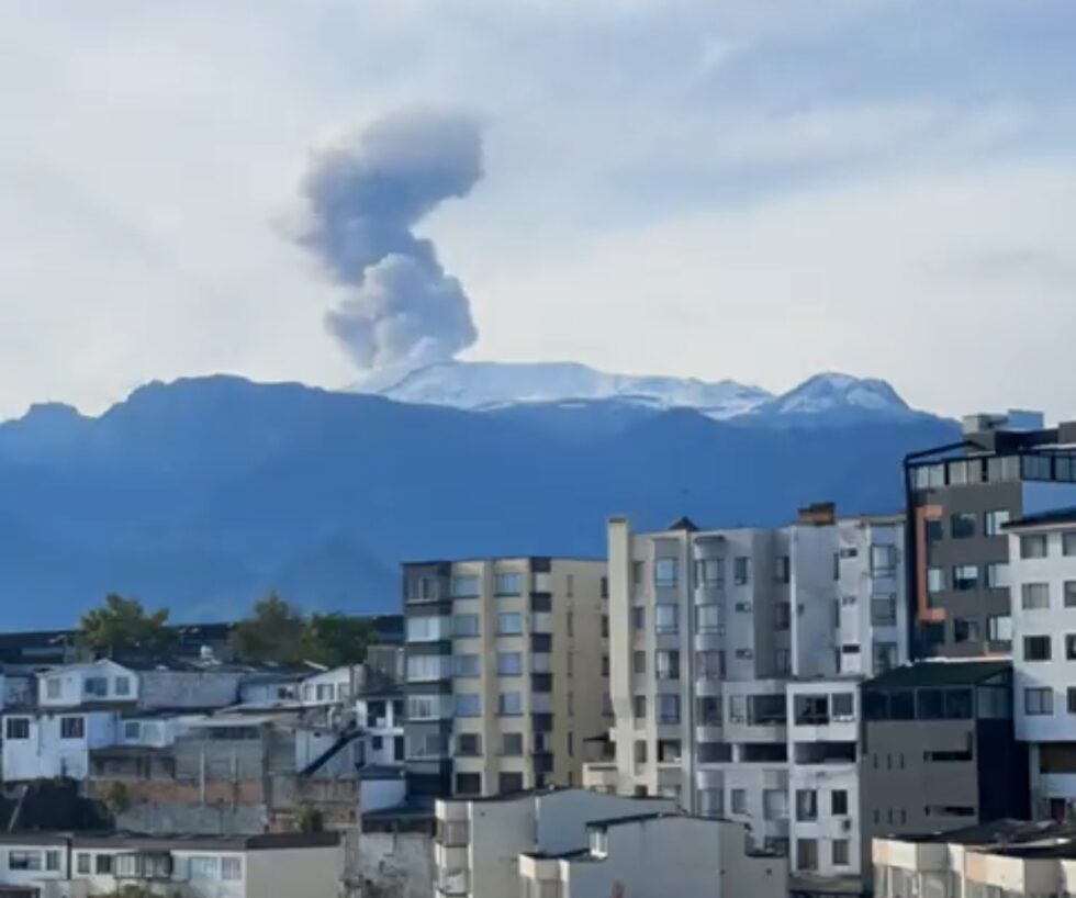 Una cámara captó el momento exacto de la expulsión de humo y ceniza. Según el reporte del Servicio Geológico Colombiano, se produjo a las 07:11 de la mañana de este martes 18 de abril. La columna alcanzó una altura de 1800 metros desde la cima del volcán.
