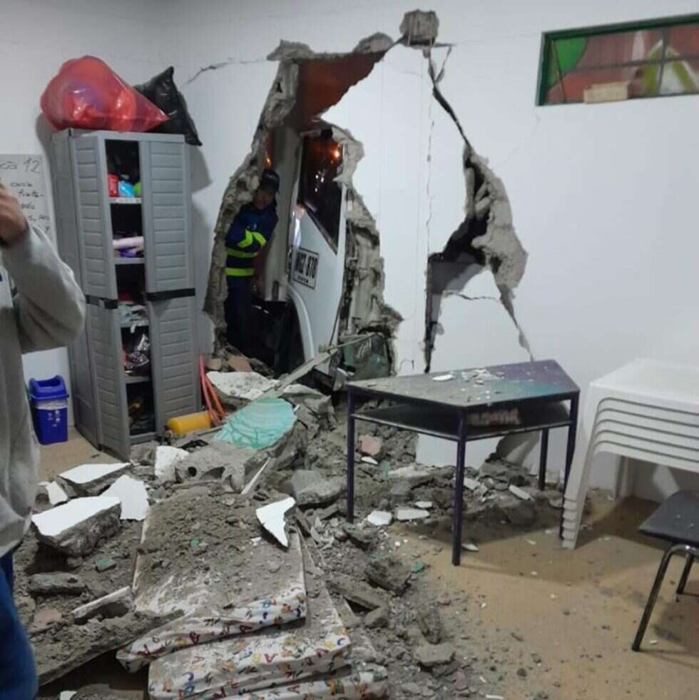 Un camión se estrelló contra el aula máxima de la sede educativa Liceo Mixto, en el barrio Sinaí, Manizales. Las autoridades reportan que el conductor perdió el control del vehículo, pero por fortuna, el accidente no dejó lesionados.