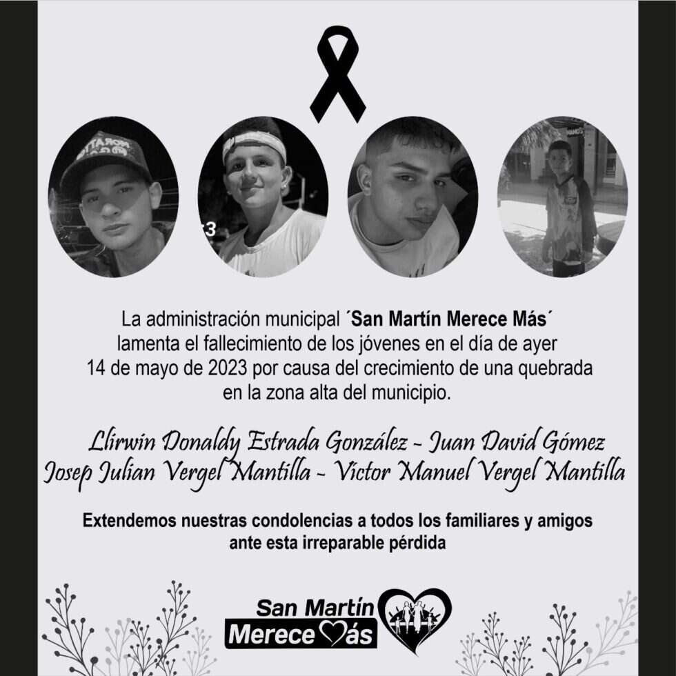 Los hermanos Josep Julián y Víctor Manuel Vergel Mantilla, de 17 y 14 años respectivamente, fueron identificados como dos de las víctimas mortales. Junto a ellos, también perdieron la vida Llirwin Donaldy Estrada, de 18 años, y Juan David Gómez. El dolor y la tristeza se han apoderó de la comunidad.