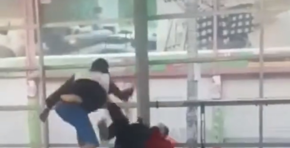 En las imágenes se ve al pasajero en el suelo, mientras intenta defenderse de los repetidos ataques del ladrón. A pesar de los gritos desesperados de otros pasajeros pidiendo ayuda y la intervención de la Policía, nadie logró detener la agresión.