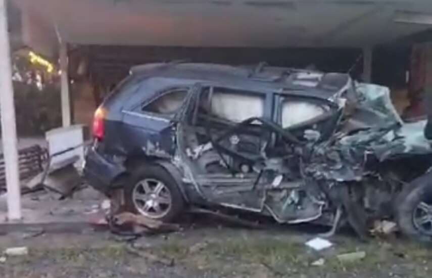 ¡Bomberos héroes! Así rescataron al conductor de la camioneta que se estrelló contra un restaurante la mañana de este lunes en Cerritos (Pereira)
