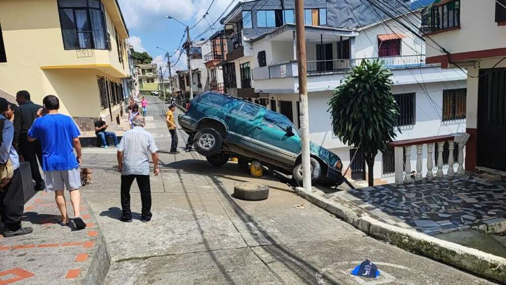 Tremendo susto, pasaron los habitantes de la intersección de la 23 con 1 bis en Pereira. La mañana de este miércoles un vehículo se quedó sin frenos. Afortunadamente no hubo heridos ni víctimas.