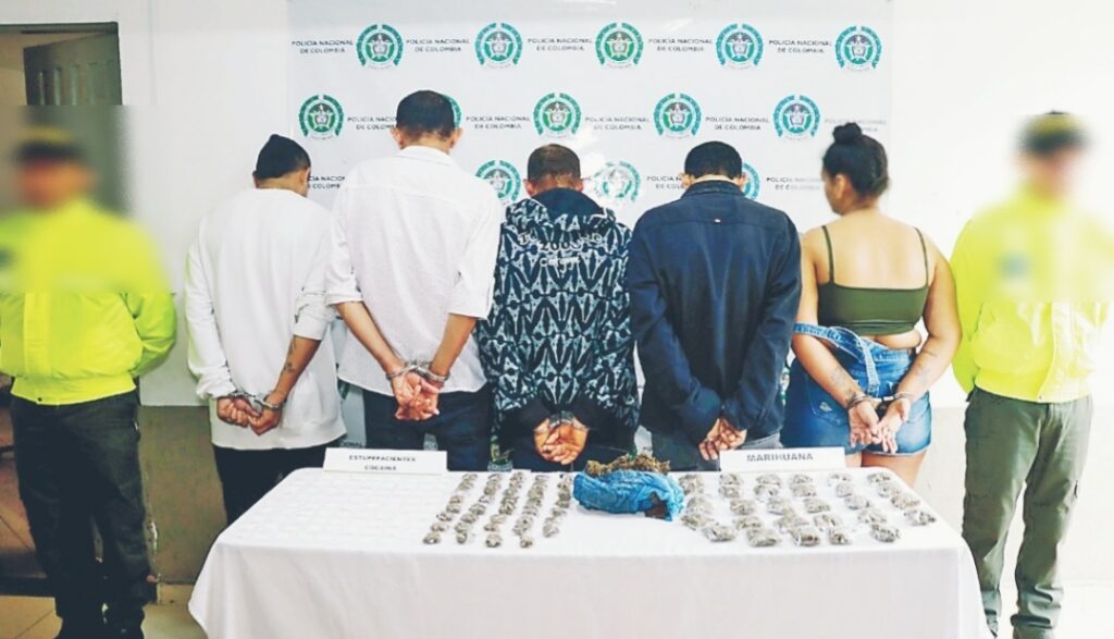 A los cinco capturados los identificaron como Daniel Alzate, de 42 años y conocido como Caravana; Jhonier de Jesús Hernández Ocampo, de 55 años e identificado como ‘Chucho’, Juan Carlos Novoa Arrubla ‘Portillo’, de 49 años; Eduardo Antonio Quintero Restrepo o ‘El Peludo’, también de 49 años; y Yensi Daniela Manrique Gómez, de 20 años y conocida como alias la Yensi.