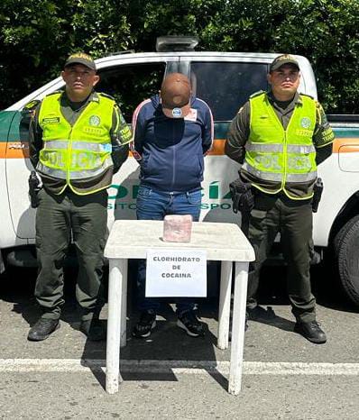 Durante un control en el sector del peaje de Cerritos, la Seccional de Tránsito y Transporte de la Policía de Risaralda interceptó a un hombre de 48 años de edad, a quien se le encontró en su bolso un paquete que contenía 561,2 gramos de clorhidrato de cocaína, con un valor estimado de $2’694.000 en el mercado ilícito.