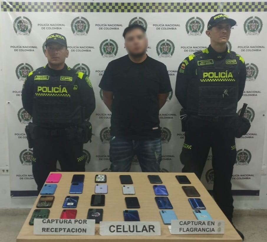 Tres arrestos en flagrancia destacan en el balance. El primero involucra fue el de un hombre proveniente de Bogotá, a quien sorprendieron dentro de un estacionamiento con 19 teléfonos celulares de alta y mediana gama. Estos dispositivos habían sido sustraídos a asistentes de un concierto en la avenida del río con calle 13.