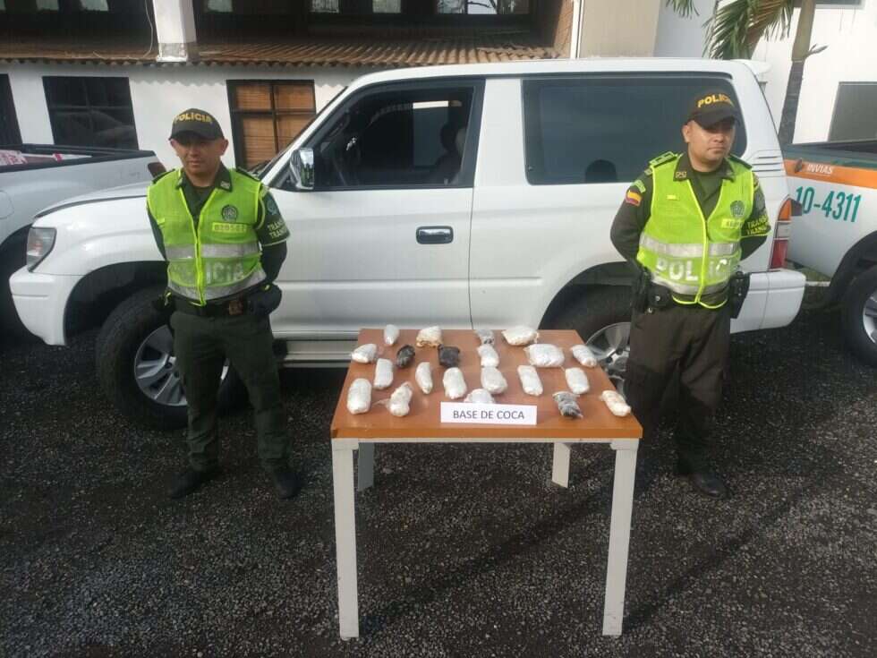 La Seccional de Tránsito y Transporte descubrió un importante cargamento de droga en un campero que habían dejado a un costado de la carretera que conduce desde Cerritos (Risaralda) al municipio de Andalucía, Valle del Cauca.