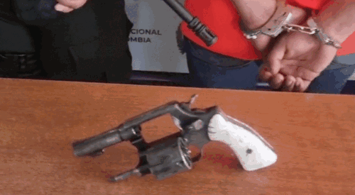 Según, llevaba un revólver calibre 32 de marca Smith & Wesson, cuatro cartuchos para el mismo calibre y 25 cartuchos calibre 38. Zapata Cardona, residente no aceptó los cargos.