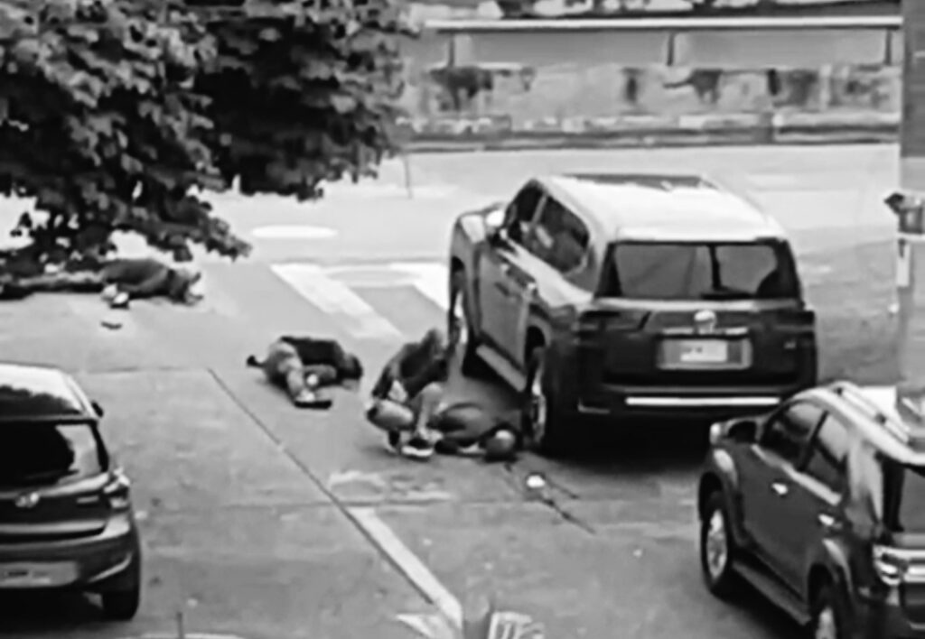 Un vídeo, grabado desde un edificio, captó el momento después del ataque. Una mujer, supuestamente, acompañaba a las víctimas, pero resultó ilesa.