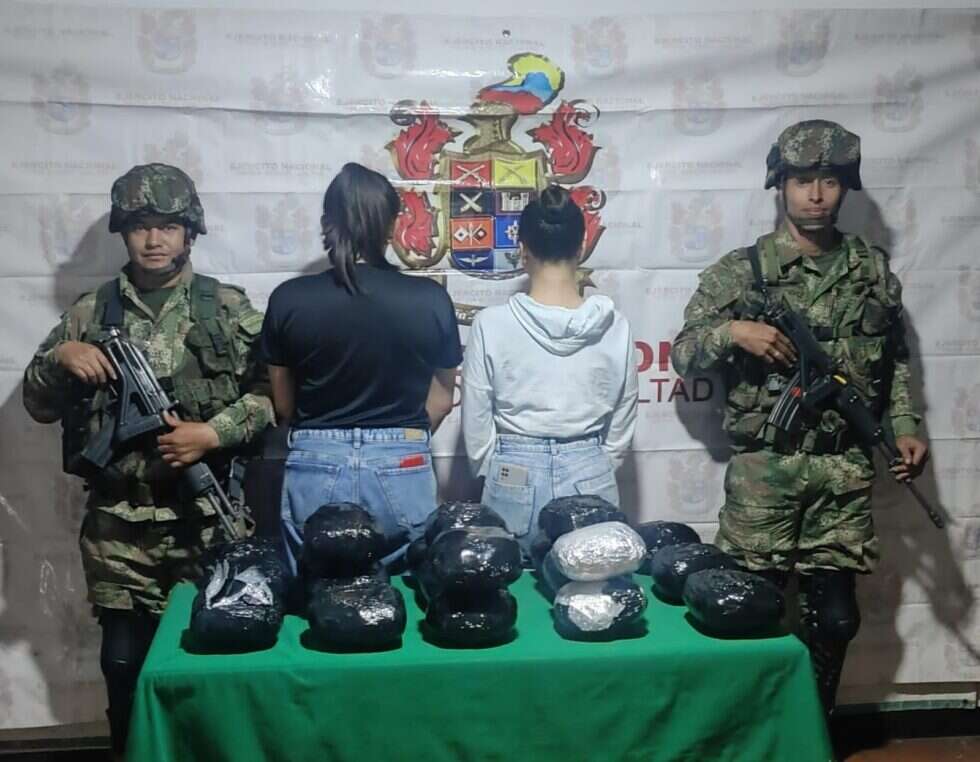 En una operación conjunta entre el Ejército y la Policía Nacional, dos mujeres fueron capturadas en el departamento del Quindío mientras transportaban 10 kilogramos de marihuana en un bus interdepartamental. “Esta acción es parte de una serie de esfuerzos por parte de las autoridades para combatir el tráfico de drogas en la región”, dice un comunicado de prensa.