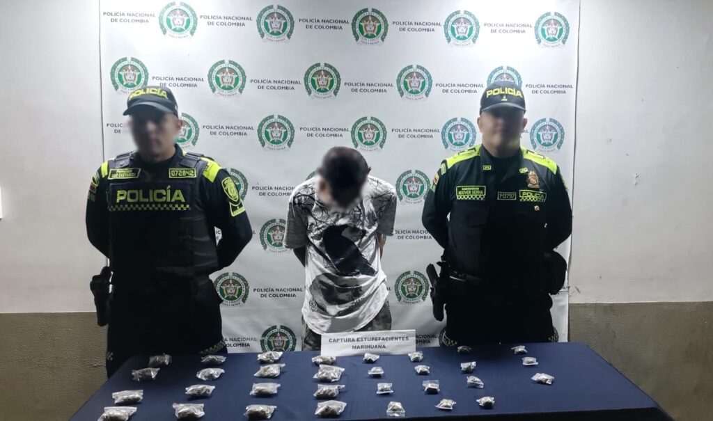 En la avenida ferrocarril con calle 11 bis, la Policía Nacional materializó la captura de un hombre de 23 años, natural de Caracas, Venezuela. El individuo fue visualizado por un dron con un paquete sospechoso, y al llegar la patrulla al lugar, se le encontraron varias dosis de marihuana.