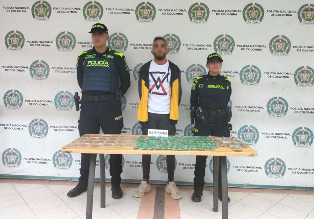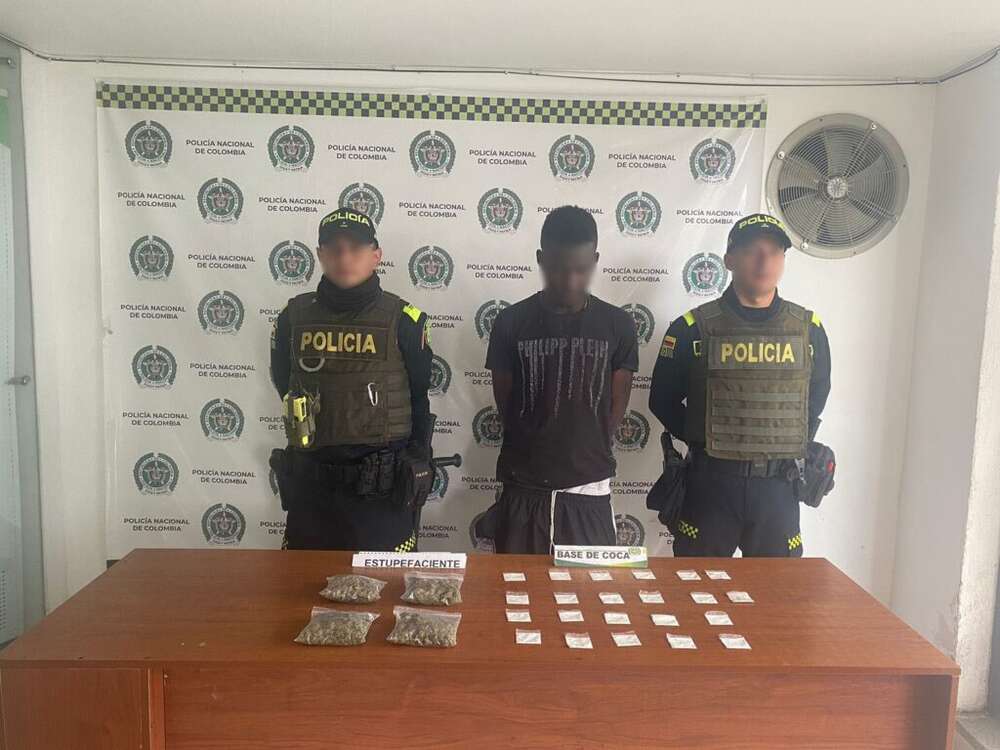 La Policía también logró la detención de un individuo de 20 años en la carrera 19ª con calle 72 de Dosquebradas. Este sujeto, originario de La Tola, Nariño, transportaba varias dosis de marihuana y base de coca en una bolsa plástica.