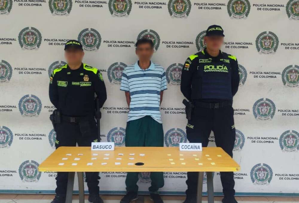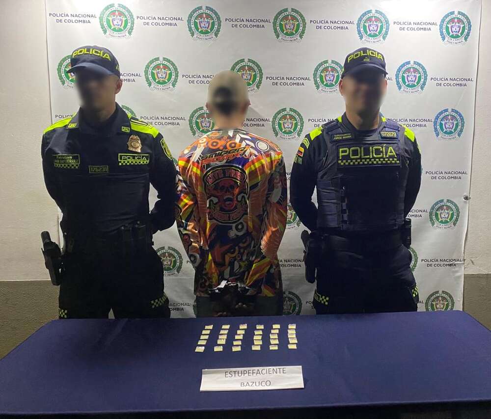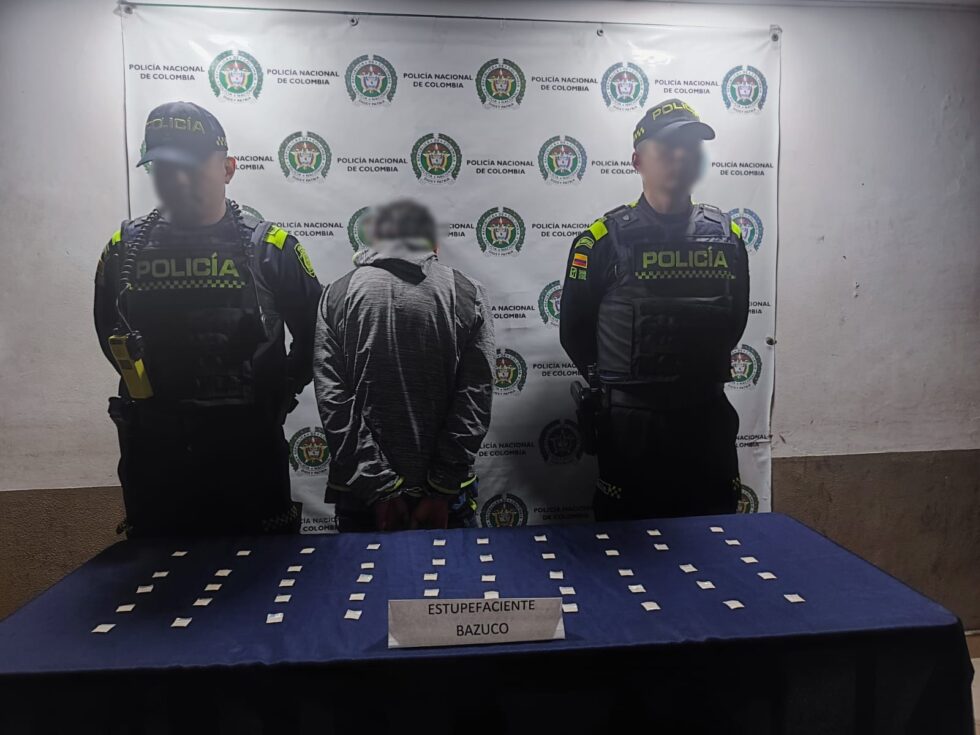 Continuando con los planes operativos policiales en el barrio San Antonio, un hombre de 26 años, conocido como “Moe”, fue capturado tras un registro voluntario. En sus prendas de vestir se encontraron varias dosis de bazuco, lo que resultó en su detención.