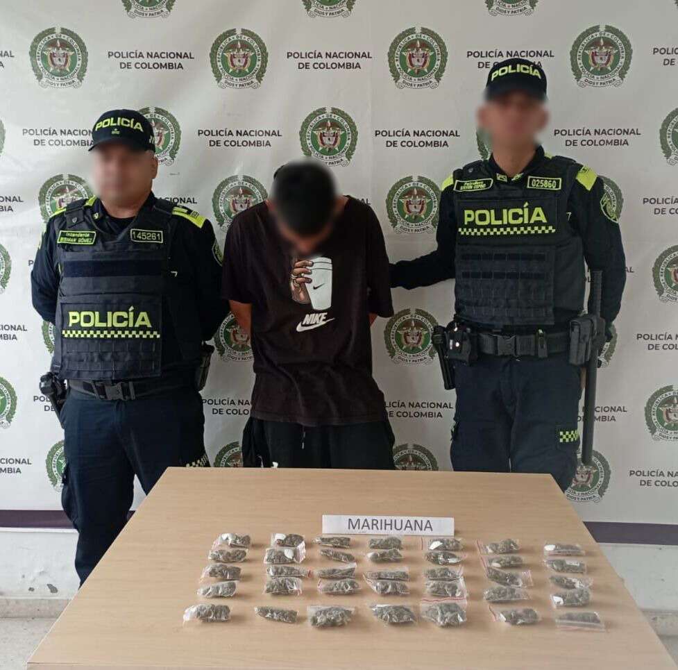 En otro operativo, en la carrera 11 con calle 8 del barrio La Magdalena, agentes del CAI Alfonso López atraparon a un hombre de 23 años que había emprendido la huida, arrojando una bolsa plástica a una zona boscosa. Tras su captura y la revisión de la bolsa, se encontraron varias dosis de marihuana.
