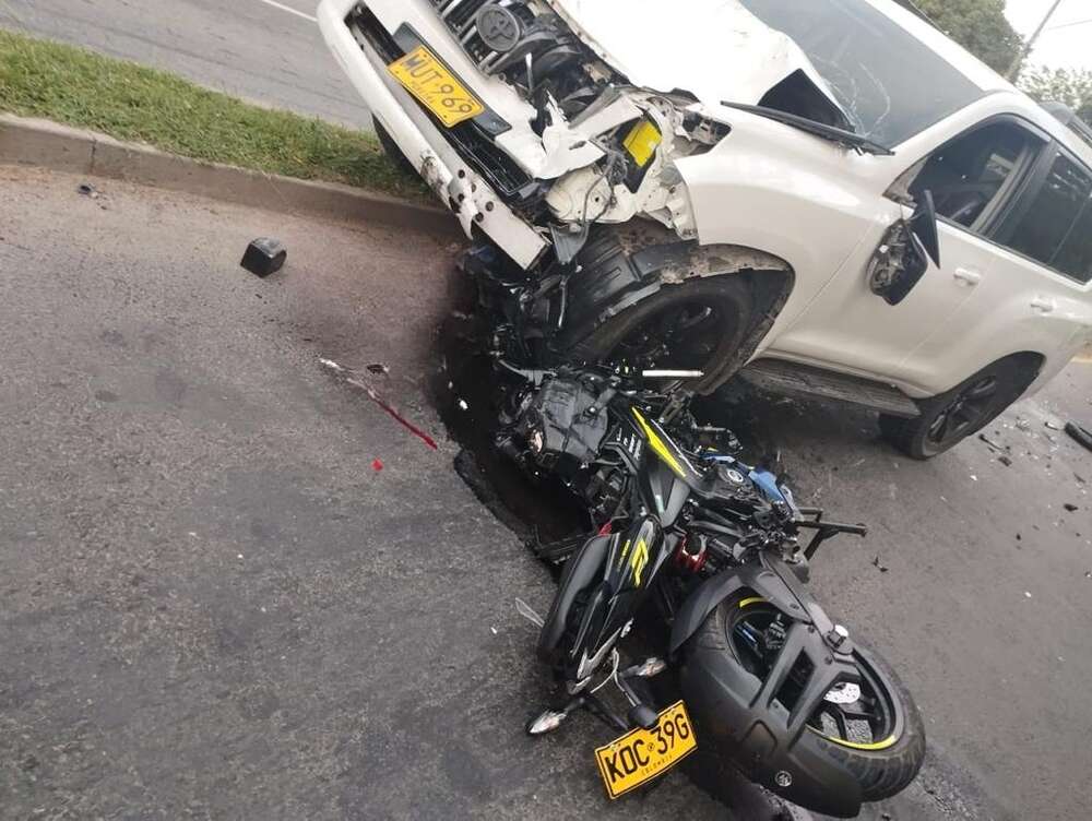 Las imágenes que se difundieron a través de redes sociales eran escalofriantes. El vehículo de marca Toyota y modelo TXL terminó en el canal contrario de la vía y el motociclista debajo de las llantas.