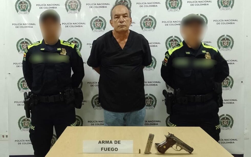Durante la captura, los uniformados incautaron un arma tipo pistola marca Browning, calibre 7.65, con un proveedor y un cartucho, valuada en $3.000.000, con la cual, presuntamente, agredió a las tres personas.