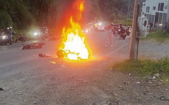 Cuando el joven cayó a la carretera impactó a una moto que iba delante de él, en la que se movilizaba una mujer: Julieth Sánchez Garcés, quien sufrió laceraciones en la rodilla izquierda, en los dos codos y trauma en el pie izquierdo.