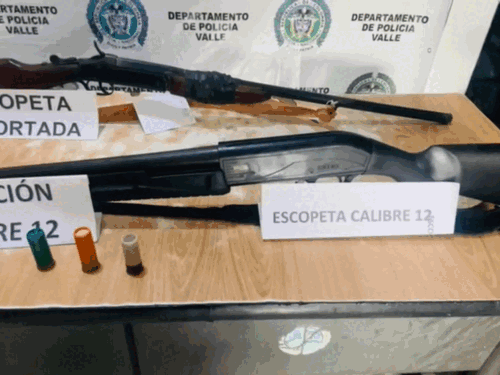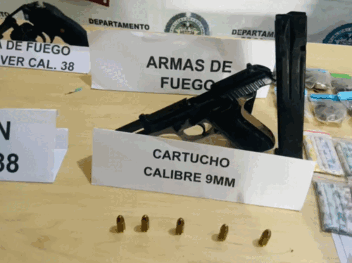 Entre los elementos incautados se encuentran dos escopetas calibre 12mm con 8 cartuchos, un arma de fuego calibre 9 mm con 5 cartuchos, un revólver Smith and Wesson calibre 38 con 5 cartuchos, 10 bolsas con sello hermético y 5 paquetes con dosis de marihuana, así como una motocicleta marca Pulsar 135 de color negro.