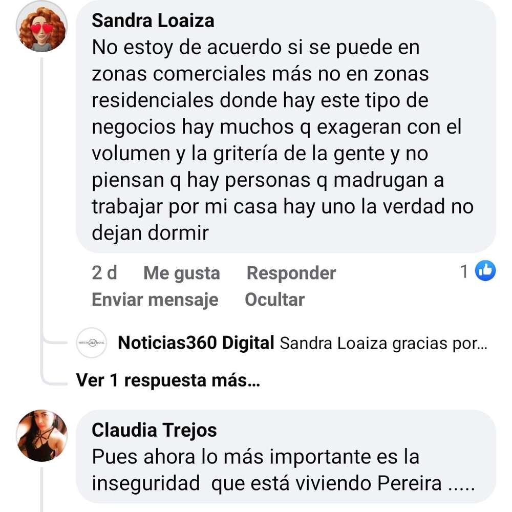 Sandra Loaiza fue una de las primeras ciudadanas en opinar y mostrarse en desacuerdo con la medida. “Se puede en zonas comerciales más no en residenciales. Donde hay este tipo de negocios, hay muchos que exageran con el volumen y la gritería, no piensan que hay personas que madrugan a trabajar. Por mi casa hay uno y la verdad no dejan dormir”, dijo.