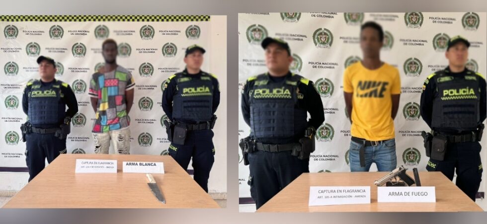 Al llegar al lugar, los uniformados sorprendieron a los dos hombres con las armas en sus manos. Julián Gómez, el joven de 24 años, tenía un arma traumática; mientras José Manuel (42) llevaba un cuchillo.