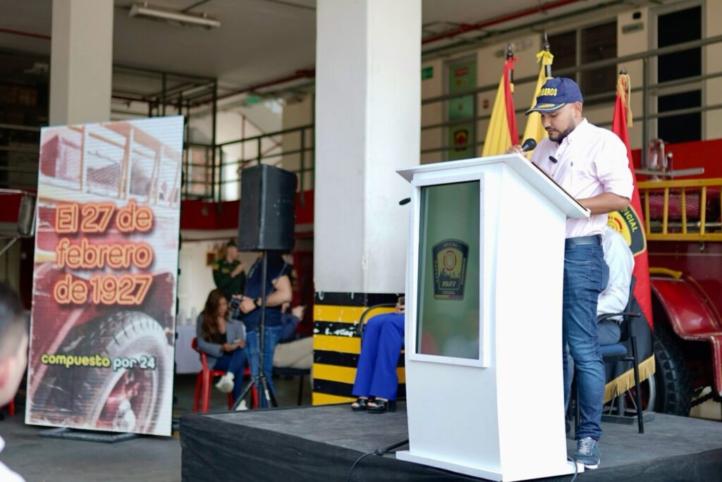 Durante su intervención Juan Camilo Ballesteros, director del Cuerpo Oficial de Bomberos, se refirió a quienes conforman dicho organismo como “hombres y mujeres valerosos”, esto a propósito del trabajo diario que realizan.