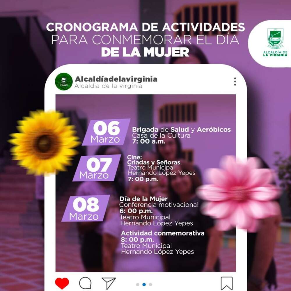 La Alcaldía de La Virginia se prepara para conmemorar el Día Internacional de la Mujer con una variada programación que abarca actividades deportivas, culturales, académicas y de salud, del 6 al 8 de marzo.