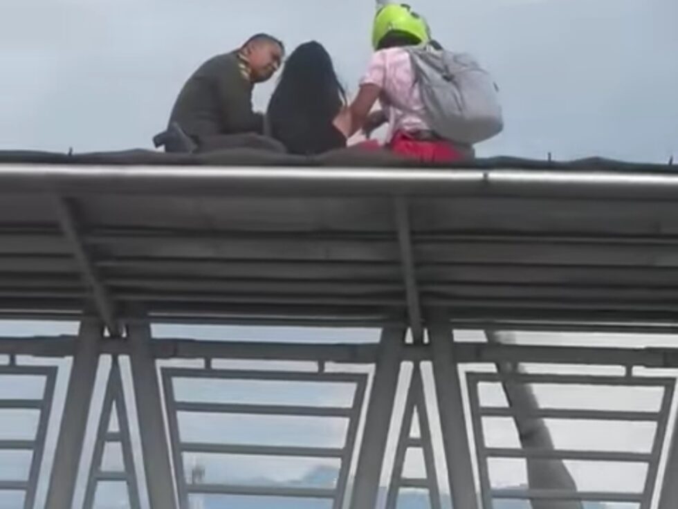 El uniformado de la Policía Metropolitana fue el primero en reaccionar. En ese momento conducía un bus de la institución y se dirigía a la estación de Dosquebradas, cuando vio a una persona caminando por el techo. No lo pensó mucho. Rápidamente orilló el vehículo y subió para hablar con ella, tan sólo segundos después llegó Jaime, un humilde campesino que reside en Chinchiná, Caldas.