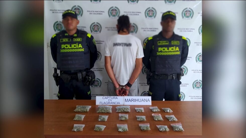 En el Plan 2, zona 3 de la manzana 3 del barrio Camilo Torres, la policía capturó a Miguel Ángel Cardona Vélez con una bolsa plástica de color negro con 18 empaques Marihuana. El capturado tiene 20 años, en total llevaba 400 dosis con un valor de 380.000 pesos.