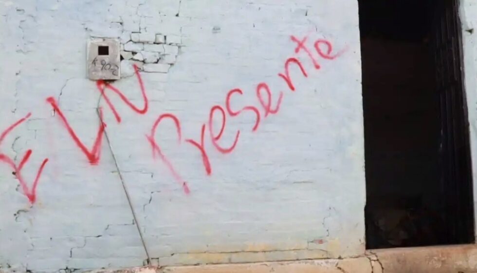 Hallaron grafitis del ELN en una casa abandonada y en una lona en Santa Cecilia