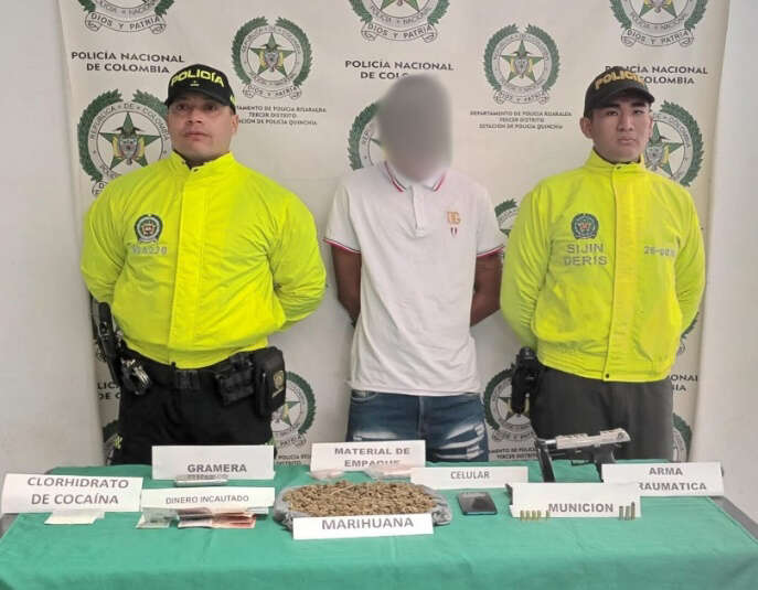La Policía de Risaralda desarticuló un punto de venta de estupefacientes en el municipio de Quinchía. El operativo se llevó a cabo en el sector “La Cancha”, donde se logró la captura de alias “El Chamo”, de 22 años, quien presuntamente lideraba la venta de estupefacientes en la zona.