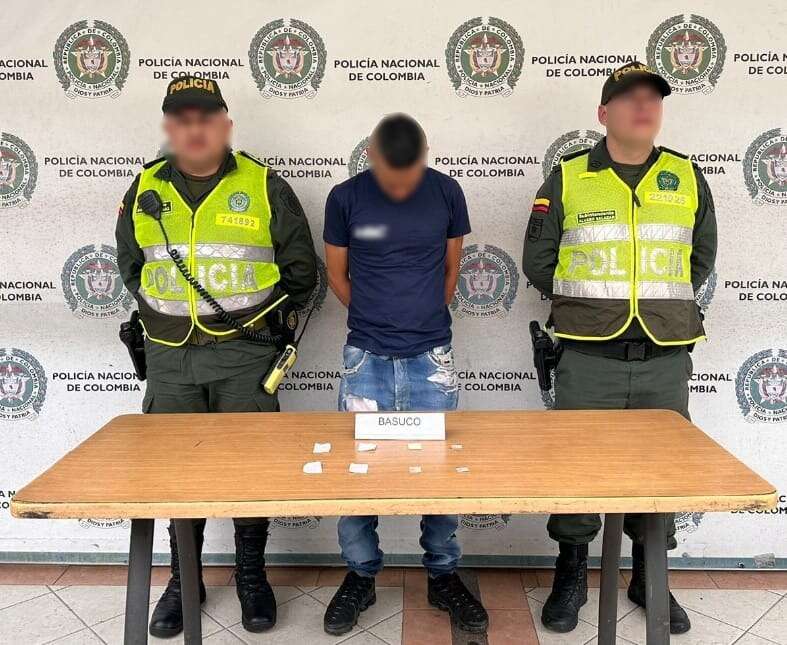 Durante labores de patrullaje en el barrio Galicia Baja, sector de la carrilera, las autoridades sorprendieron a un hombre de 41 años, involucrado en el transporte informal en motocicleta, en posesión de varias dosis de bazuco, presuntamente destinadas a la venta en la zona.