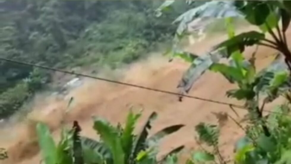 Una familia que se encontraba en la parte alta de la montaña, captó con su teléfono celular, el momento exacto en el que se produjo el deslizamiento de este sábado en la mañana.