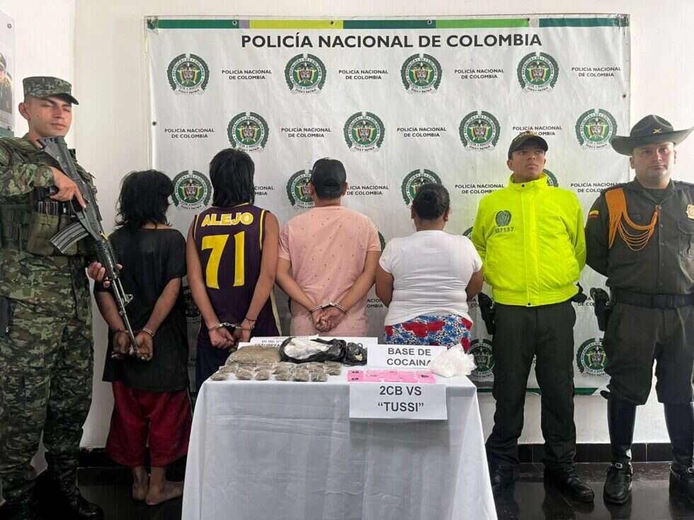 En un operativo conjunto, la Policía Nacional y la Fiscalía General de la Nación capturaron a cinco personas, incluyendo un menor de edad, por el delito de tráfico de estupefacientes en el corregimiento de Columbia y el barrio El Coliseo. Los allanamientos fueron el resultado de cuatro meses de investigaciones que permitieron identificar a los integrantes y el modus operandi de la banda.