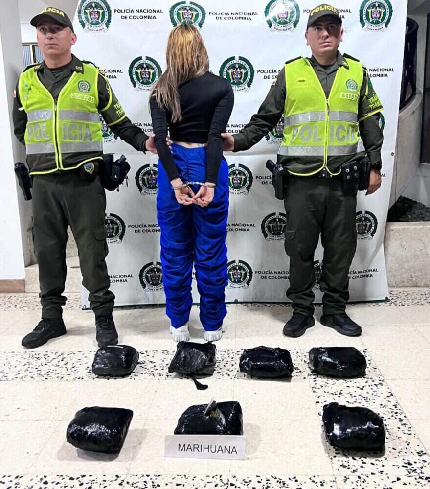 La marihuana incautada tiene un valor aproximado de 8 millones de pesos. La mujer fue capturada y puesta a disposición de la autoridad competente por el delito de tráfico, fabricación o porte de estupefacientes.