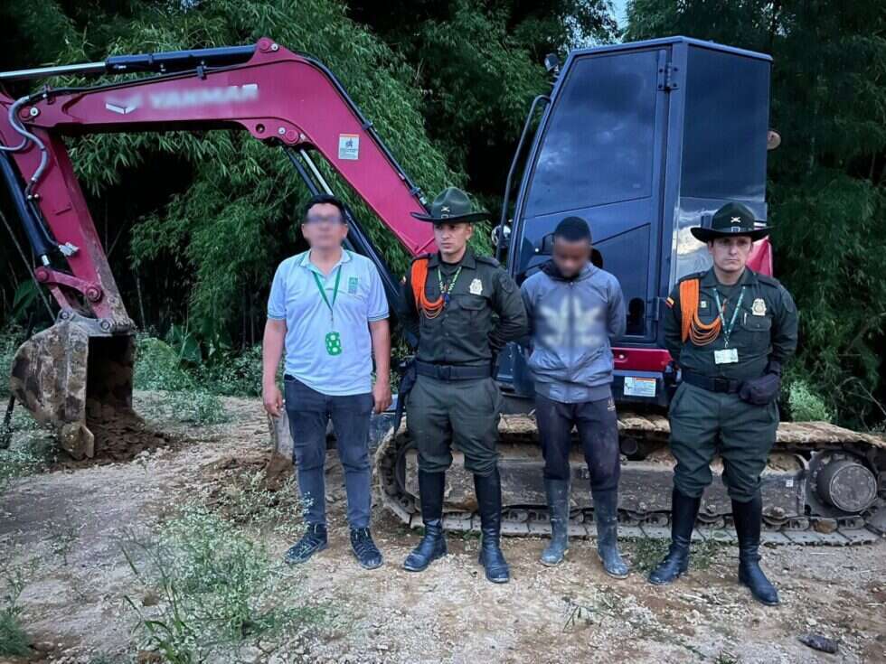 La Policía Metropolitana de Pereira logró la captura de un hombre de 30 años, natural de Bagadó, Chocó, realizando actividades de disposición de material sobrante de descapote y excavación con una retroexcavadora.