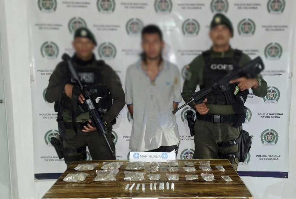 En el barrio Pueblo Sol, un hombre de 20 años llevaba con 1200 gramos de marihuana listos para su distribución y en el barrio La Paz, un hombre de 43 años fue capturado con 90 dosis de bazuco en su poder.