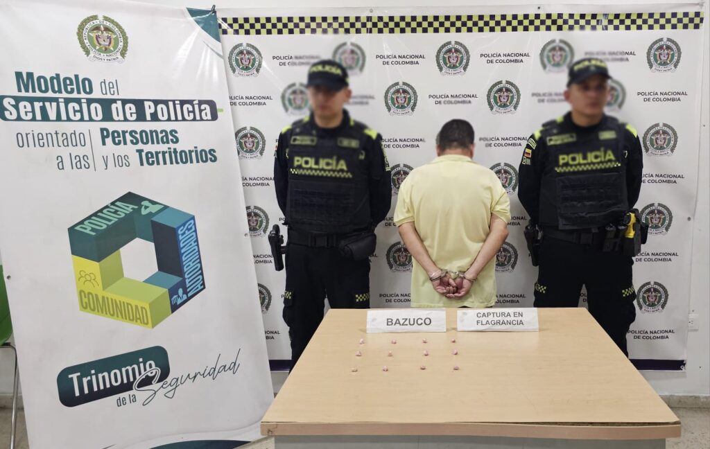 En el sector centro de la ciudad, una persona de 49 años fue capturada con varias dosis de bazuco en sus prendas de vestir. Finalmente, en el barrio San Joaquín, un hombre de 25 años fue capturado con varias dosis de base de coca en su poder.