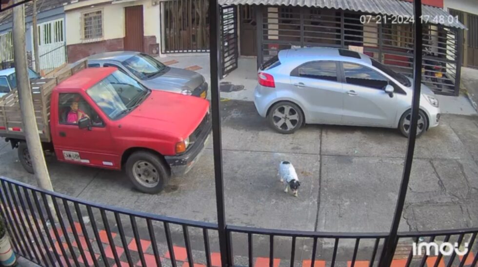 Una cámara de vigilancia captó el momento en el que un conductor en un camión atropelló a un canino en el barrio Kennedy, en Pereira.