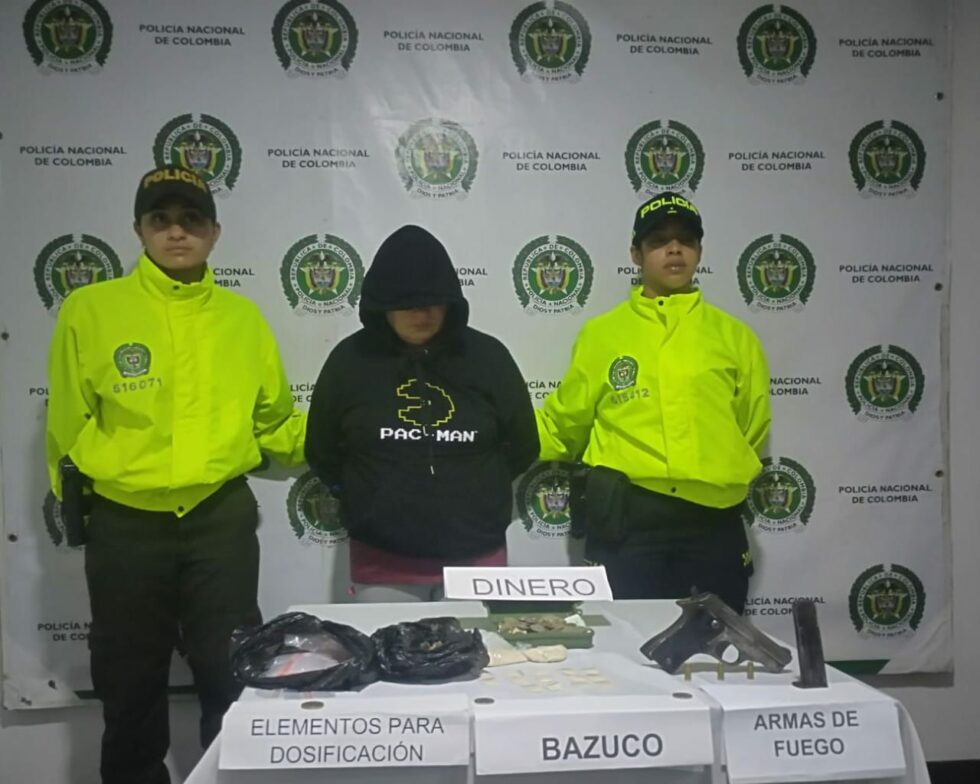 La operación se llevó a cabo en una finca de la vereda La Elvira, donde los investigadores de la SIJIN hallaron drogas listas para la venta, un arma de fuego y elementos para la dosificación de sustancias.