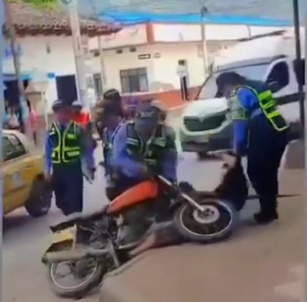 En un video, que se difundió en redes sociales, se ve a varios agentes de tránsito cuando forcejean con el conductor de la moto, quien intentaba huir del lugar porque, presuntamente, no tenía la documentación en regla.