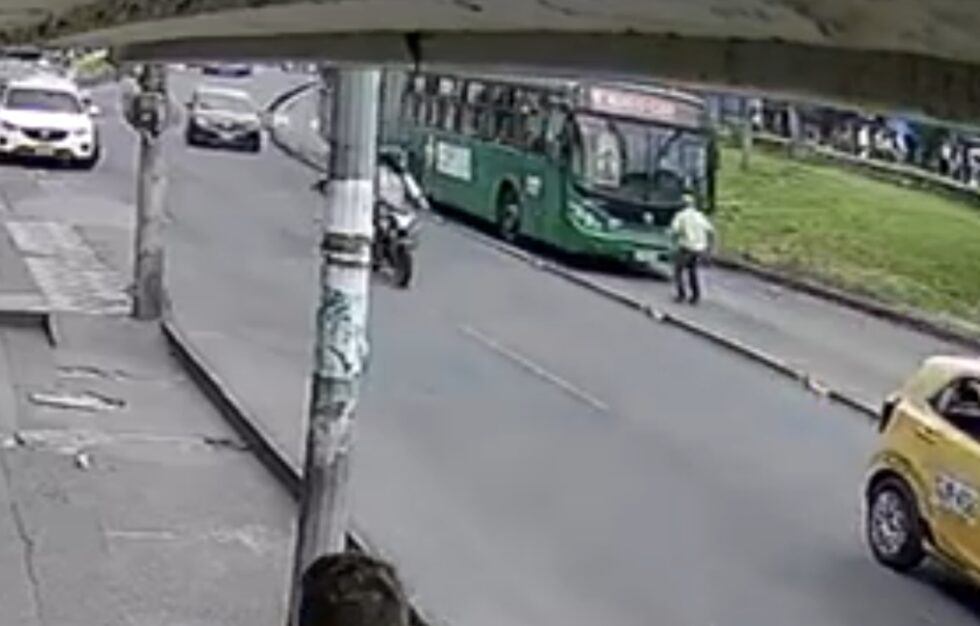 Una cámara de vigilancia captó el momento en que Ramón Emilio Bedoya Henao, de 72 años, fue atropellado por un Megabús en la avenida Simón Bolívar, en el municipio de Dosquebradas.