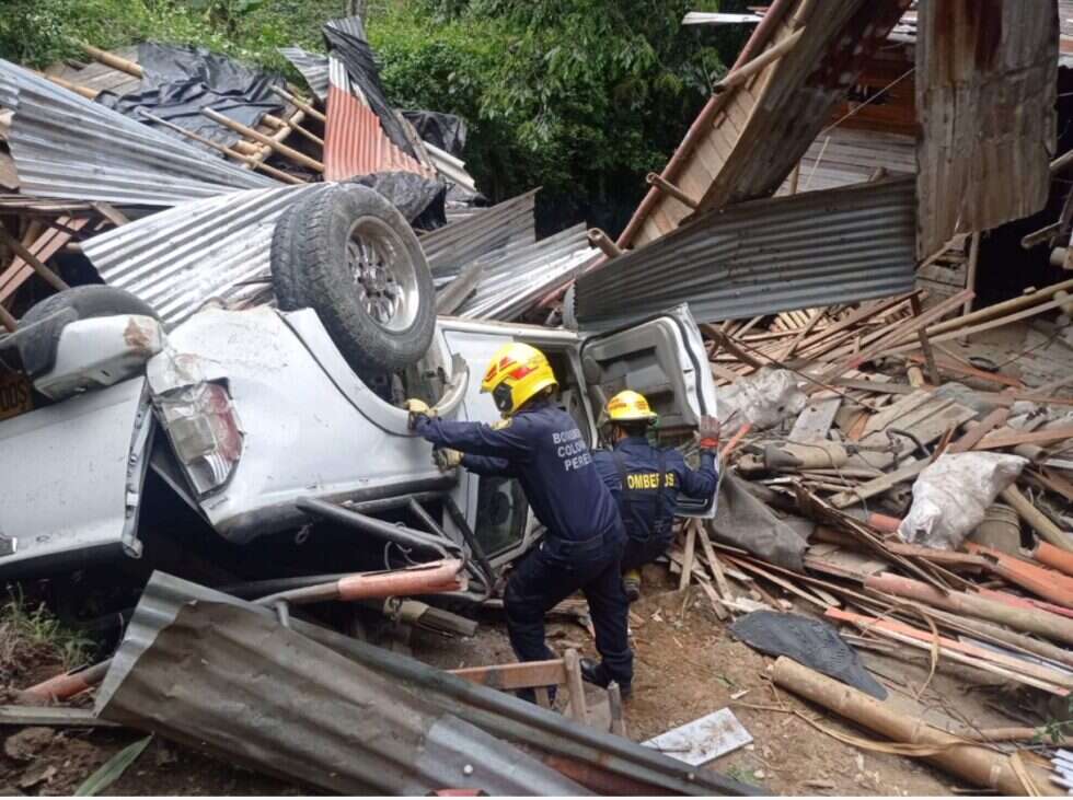 El primer informe del Cuerpo Oficial de Bomberos de Pereira, dijo que el vehículo tipo camioneta perdió el control y colisionó con varias viviendas de material liviano que hay en el sector.