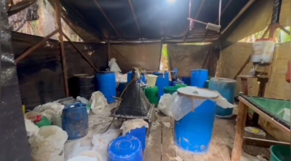 Un laboratorio ubicado en la vereda La Gurbia de Balboa, Risaralda. La Octava Brigada del Ejército Nacional y la Fiscalía General de la Nación realizaron una operación conjunta que permitió la captura de tres personas y la incautación de media tonelada de clorhidrato de cocaína.