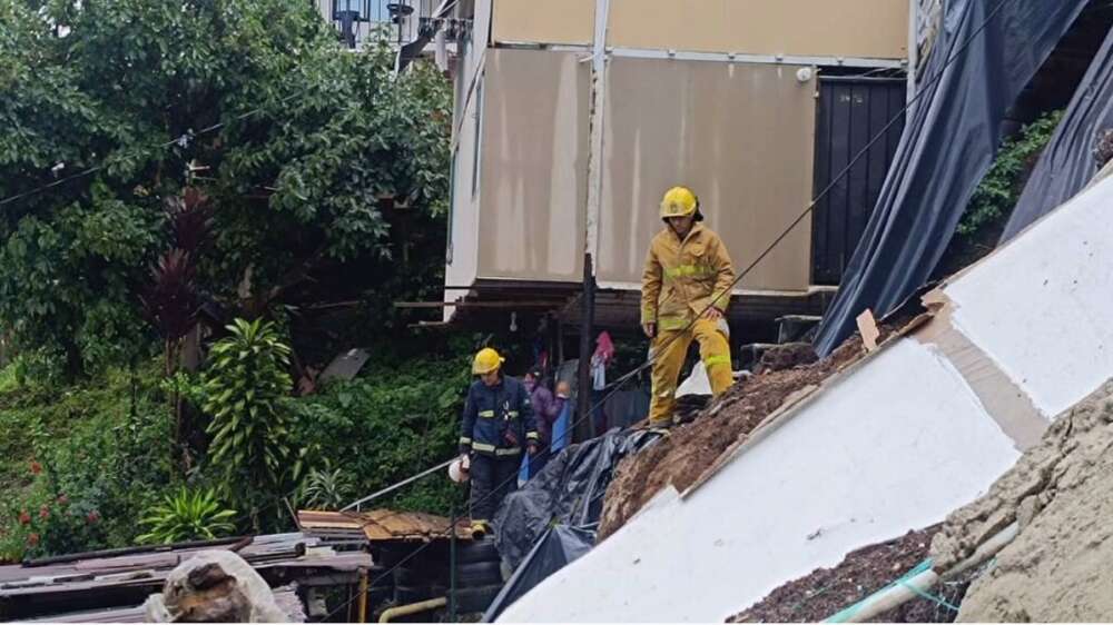 Una llamada de emergencia alertó a los Bomberos de Santa Rosa de Cabal sobre un deslizamiento y colapso de viviendas en el barrio La Esperanza.