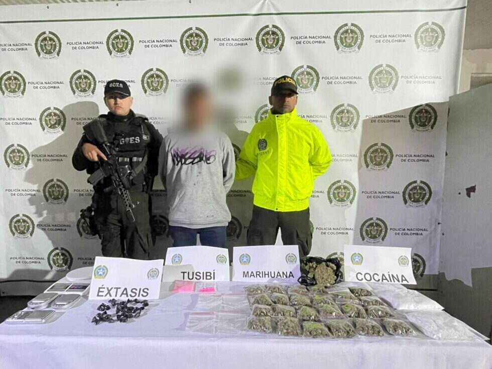 Un informe de la Policía de Risaralda dice que el capturado tenía en su poder una considerable cantidad de sustancias ilícitas, incluyendo 500 gramos de cocaína, 500 gramos de marihuana, siete pastillas de éxtasis, 15 dosis de tucibi y grameras.